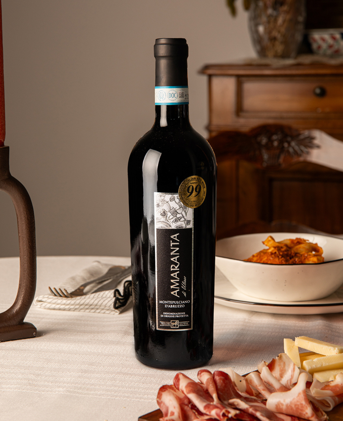 Tenuta Ulisse „Amaranta“ Montepulciano D’Abruzzo DOP – struktūriškas ir elegantiškas raudonasis vynas, atskleidžiantis brandintų Montepulciano vynuogių gilumą.