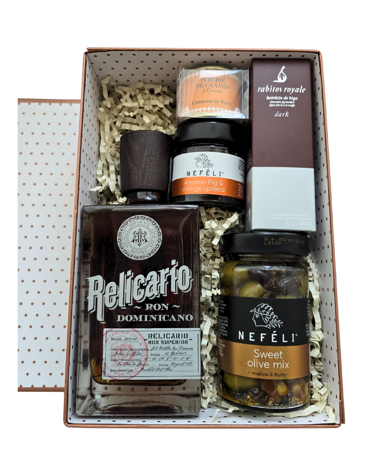 Centrinis akcentas – Relicario Ron Superior – brandintas 5–10 metų romas, garsėjantis subtilia karamelės, vanilės ir ąžuolo harmonija. Šalia – išraiškingi Viduržemio delikatesai: aštrus figų džemas su apelsinais, antienos terinas su citrusais, šokoladiniai skanėstai su brendžiu ir alyvuogių rinkinys.