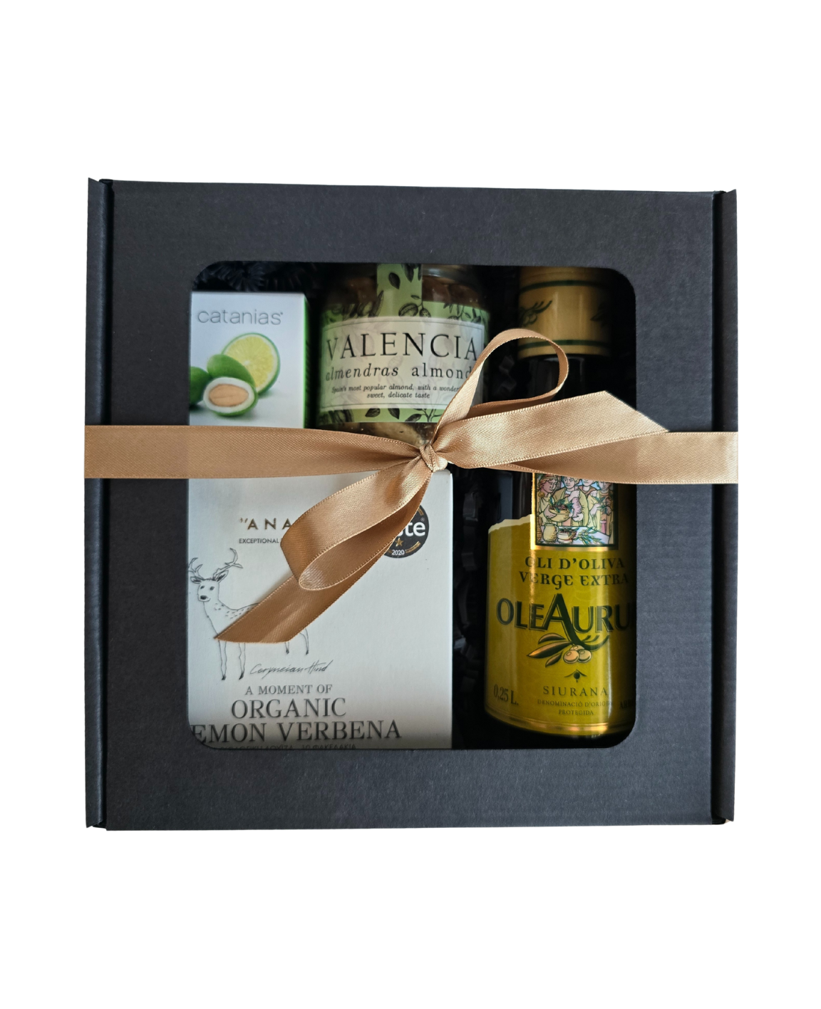 Visi produktai supakuoti į elegantišką dėžutę su langeliu ir kaspinėliu – tai puiki dovana svečiui, padėkos gestas ar stilingas priedas prie verslo dovanos.